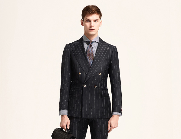 深灰色豎條紋時尚雙排扣商務(wù)套裝