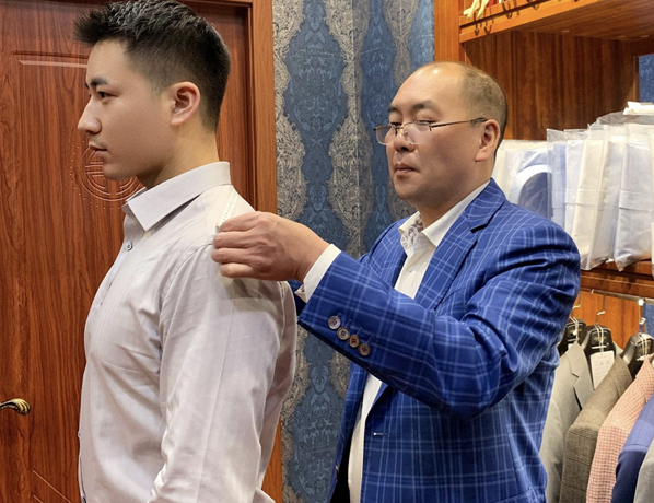 Less More精品店的資深量體師為您量體及試衣,定制更合身合體