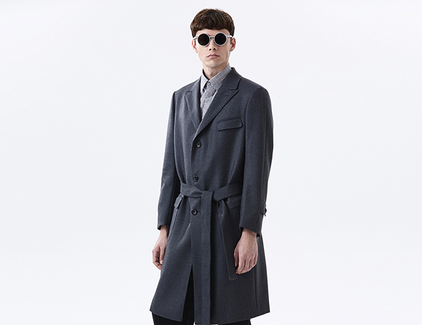 灰色提花系帶大衣
