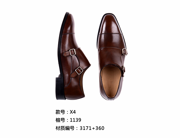 深紫紅色雙扣同款皮鞋定制