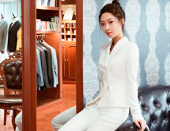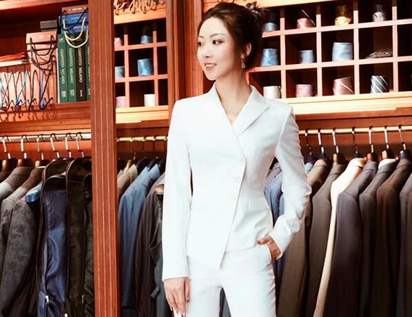 白色修身女士同款西服定制