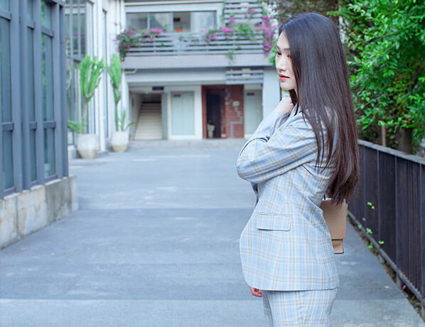 女士灰色格紋同款西服定制